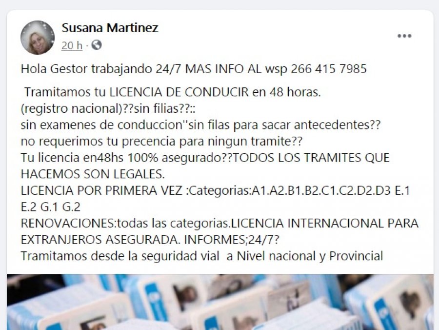 La promesa es siempre la misma: hay que transferir dinero a una cuenta bancaria, mandar los datos personales a un Whatsapp y a los pocos días la Licencia llegará por correo, algo que en la mayoría de los casos no sucede o, cuando llega, se trata de un documento sin valor alguno.
