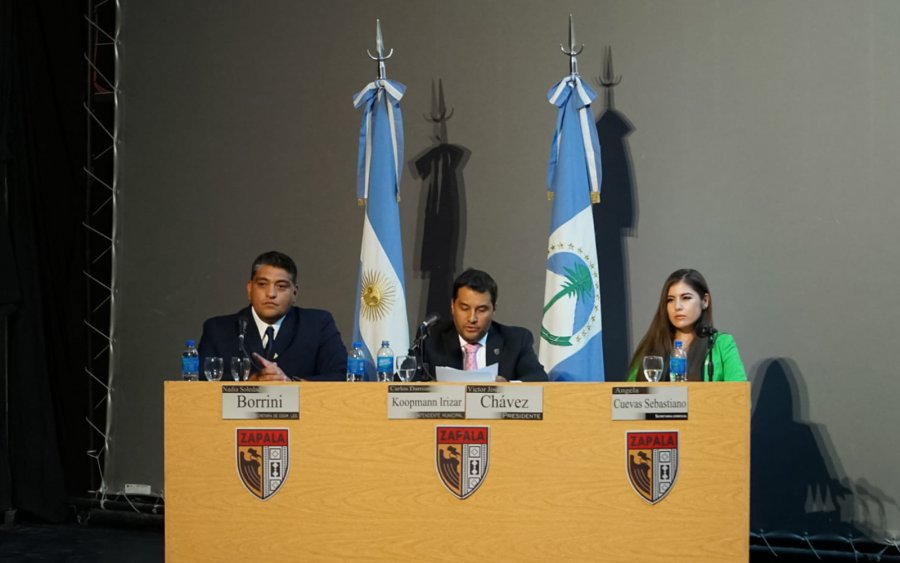 En horas de la tarde, y en el Cine Teatro Municipal “Amado Sapag”, el Concejo Deliberante tuvo su Sesión inaugural con la presencia del intendente Koopmann que brindó su discurso ante funcionarios municipales y provinciales, y vecinos. La apertura contó con la presentación de la banda del Ejército, a cargo de la entonación de los himnos, el acompañamiento de los Diputados Provinciales, Javier Rivero y Andrés Peressini, integrantes del Ejecutivo Municipal y ediles.