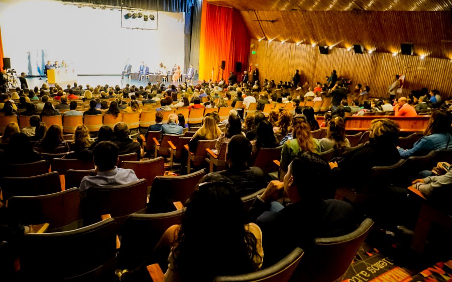 El inicio de sesiones se llevó a cabo respetando los protocolos de bioseguridad vigentes. Es por ello, que en las afueras del Cine se montó una pantalla gigante para que los vecinos y vecinas interesados pudieran tomar asiento y escuchar el discurso.