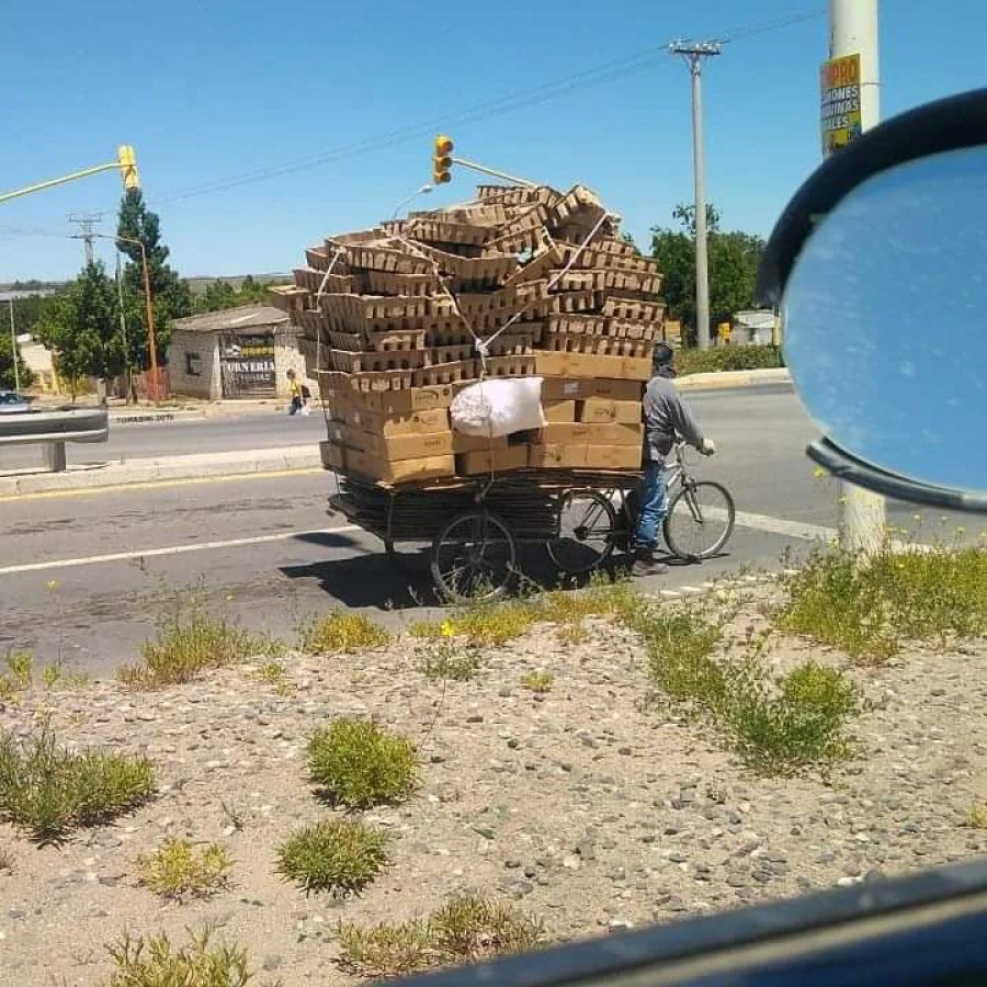 Alejandra -en diálogo con Hechos- contó que su compañero trabaja desde hace más de 20 años juntando cartones en su bicicleta y con su carrito, oficio que les permite subsistir en la ciudad.